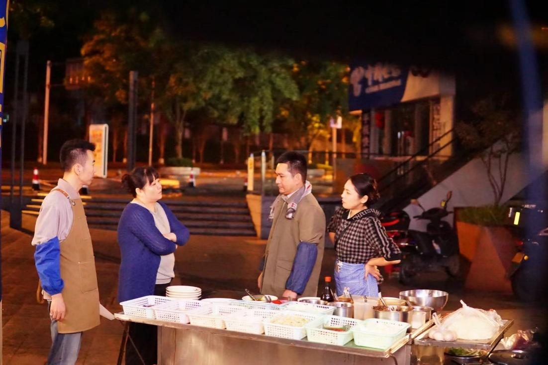 我是学厨师出身,后来又去中央戏剧学院学习表演。两年多前,我和同伴们一起决定做一个视频账号,以“深夜厨房”为场景、以“我们的冷暖人生”为主题,讲述重庆深夜小面摊上人生百态,以发挥我厨师和表演的专长。我们团队一行20余人,有编剧、导演、摄像等齐全的工种,每天傍晚开始摆摊拍摄,凌晨或天亮收工,顺利的时候一天能够拍摄两条视频。