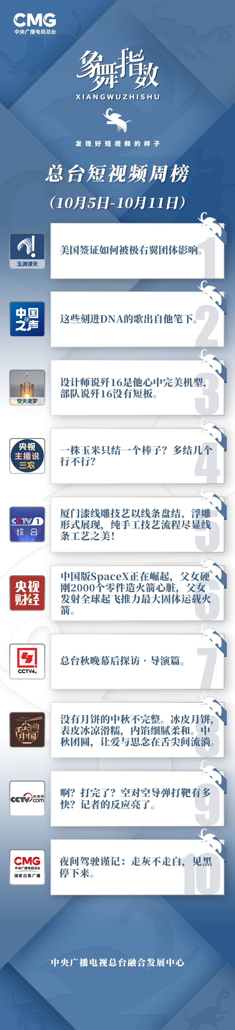 象舞指数|短视频周榜(2025年10月5日—10月11日)