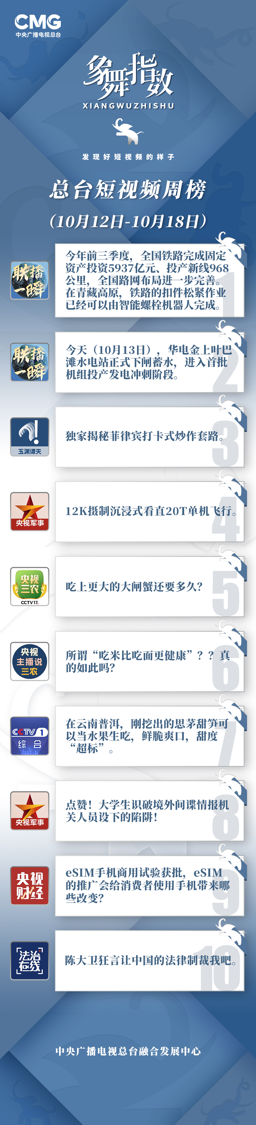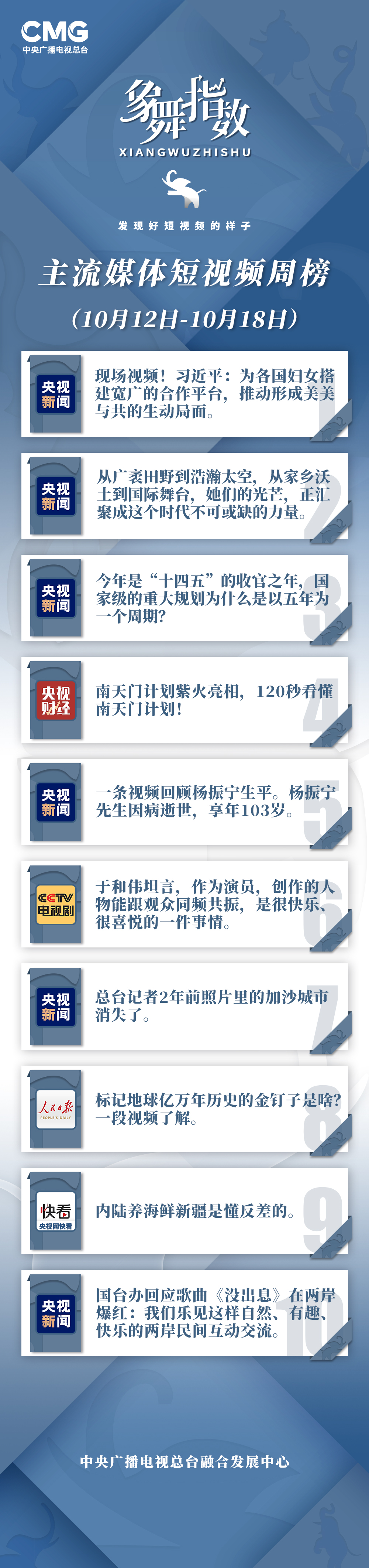 象舞指数|短视频周榜(2025年10月12日—10月18日)